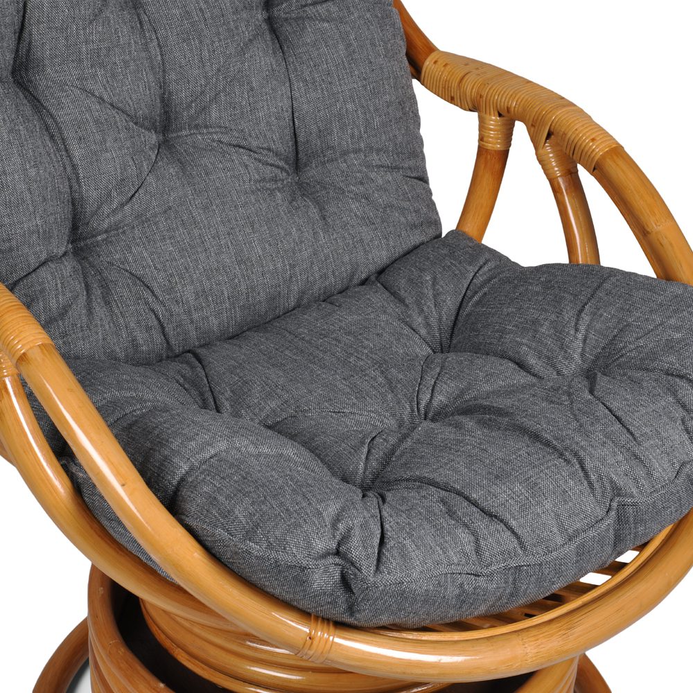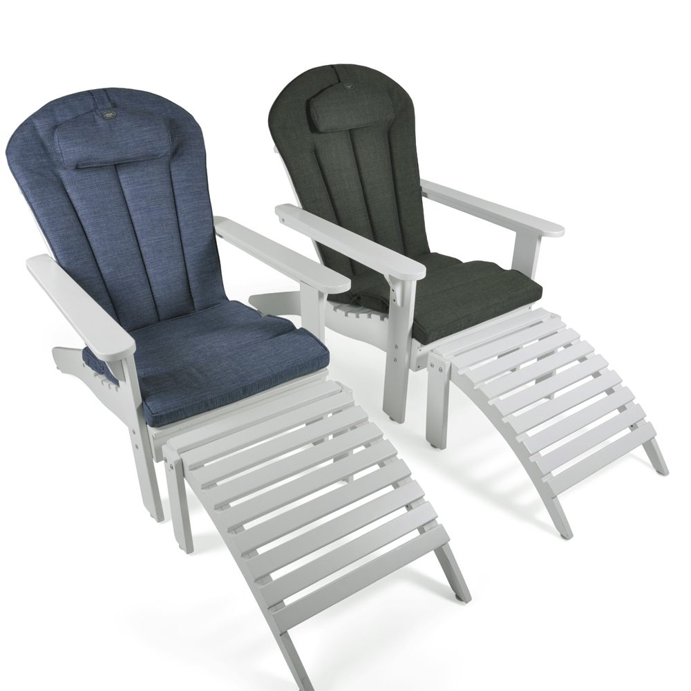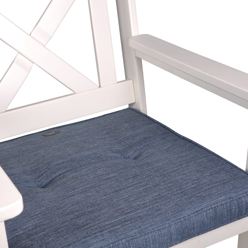 The cushions are reversible and made from water-repellent Olefin fabric (polypropylene). Olefin is a durable material that is also more environmentally friendly to produce than many other fabrics with similar properties.